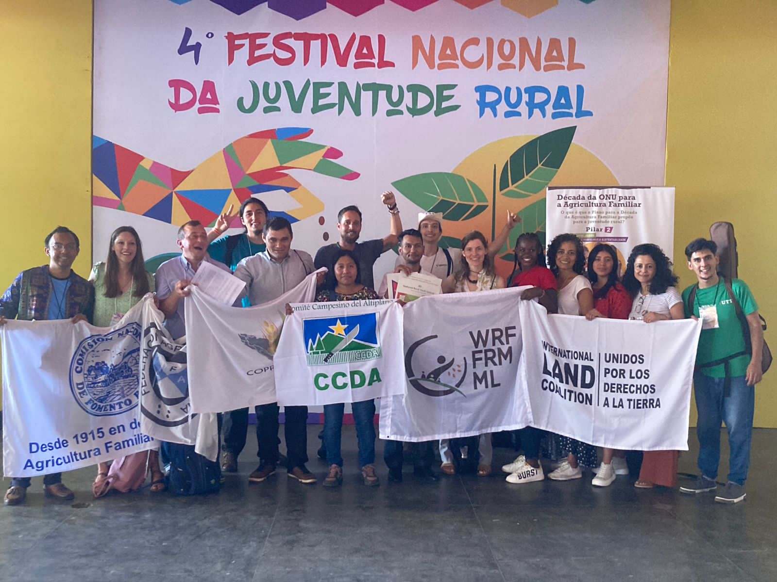 La delegación internacional de jóvenes participó en el IV Festival Nacional de la Juventud Rural: «Juventud Rural, Sembrando Resistencia y Cultivando un Mundo Nuevo», organizado por la Confederación de Trabajadores Rurales y Agricultores Familiares (CONTAG) y el Movimiento Sindical de Trabajadores Rurales (MSTTR), en Brasilia, Brasil, del 25 al 27 de abril de 2023. El festival ofreció un espacio inigualable para intercambiar experiencias, conocimientos y estrategias para la mejora de las políticas públicas.
