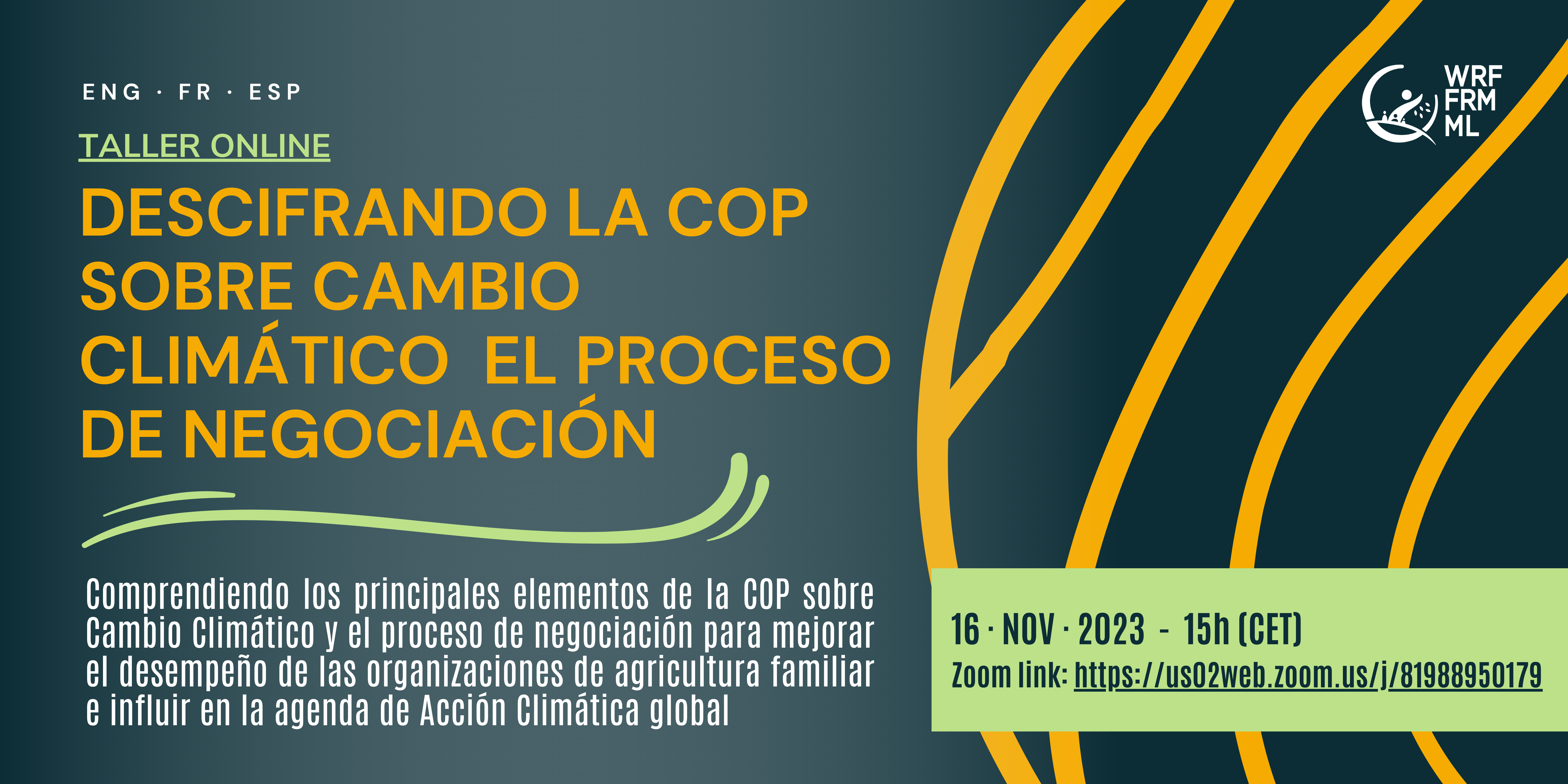 El Foro Rural Mundial organiza un taller online para comprender los principales elementos de la COP sobre Cambio Climático y el proceso de negociación para mejorar el desempeño de las organizaciones de agricultura familiar e influir en la agenda de Acción Climática global.